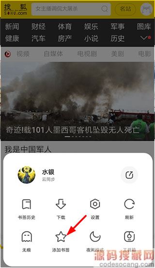 2、接下来在出现的功能列表里,选择“添加书签”选项,大家就能够成功的设置书签,以便日后查找了;