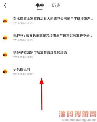 3、而查找书签的方法也很简单,从功能列表里选择“书签历史”选项,就可以成功的找到自己收藏过的书签。