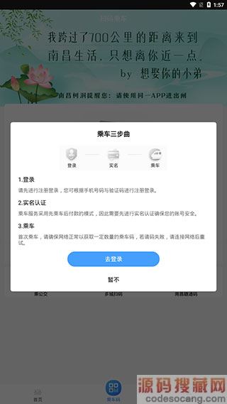 1、想要开通南昌地铁app的扫码乘车功能,需要经过【三个步骤】:登录、实名认证、乘车。