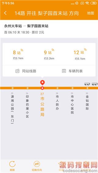 3、查看实时公交,可查询该站点所进过车辆线路信息。