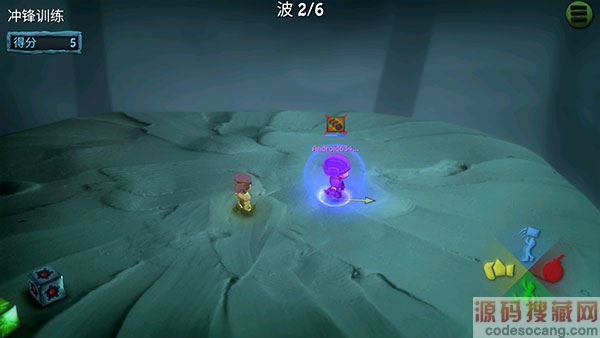 7、新手教程后,进入练习演练,关卡内会随机掉落各种盒子,需要收集盒子并进行战斗,左上角是得分哦,努力打败你的对手吧!