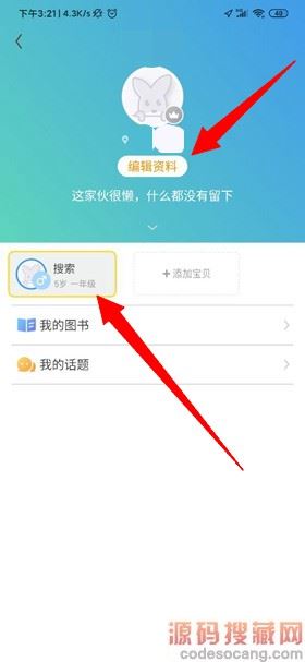 2、这个时候我们可以点击上面的编辑资料修改自己的名字或头像,或者点击宝贝,修改它的小名或头像。