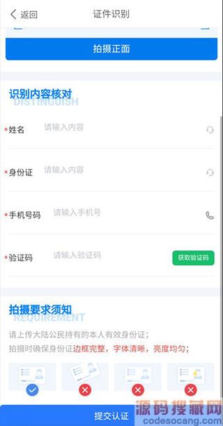 4、如果识别信息有误可以手动更改,手机号码默认是你的登录手机,接着获取验证码并填写,最后点击最下方的“提交认证”按钮即可。