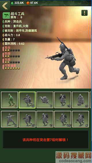 (2)另外不同的兵种还有战斗力、负重、塑料消耗也不尽相同。