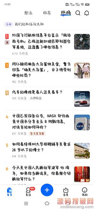 3、在“热榜”里,你可以看到最新的新闻热点话题,排名按热度依次排列,上下滑动查阅起来很轻松。