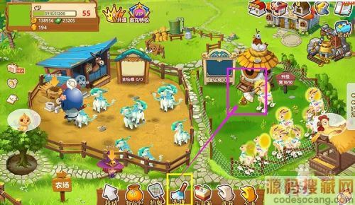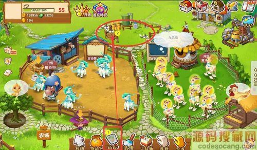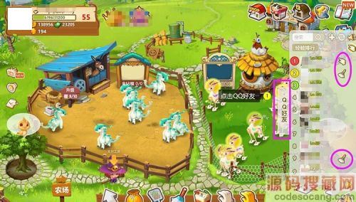 12、点击右侧的QQ好友,则可以查看好友的等级以及排名,可以看到可以去哪个好友家抓取幼崽和清理便便,1牧场商店2饲养市场3仓库(动物产品、未放羊幼崽在这里)4装饰市场5图鉴收藏6活动7寻宝;