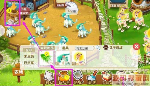 9、生产完成后,点击一键收获。来收获幼崽。收获幼崽也加经验,经验到一定数值的时候可以进行升级;