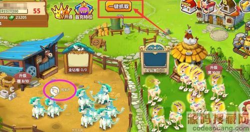 8、喂饱了以后,看到有可生产的动物,我们点击上方的一键抓取。抓取后,进入倒计时;