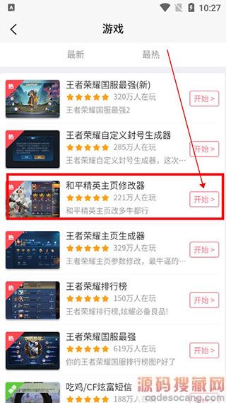 4、在其下界面我们可以看到和平精英个人主页修改器,点击开始即可;