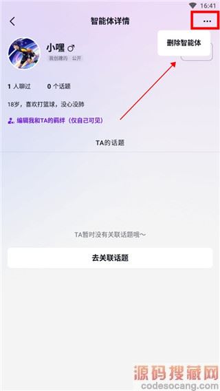 4、进入后,即可选择右上角的三点进行删除智能体了。
