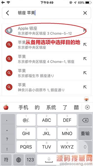 3、从地图出现目的地的图标,打开屏幕下方菜单后可查看目的地详情;