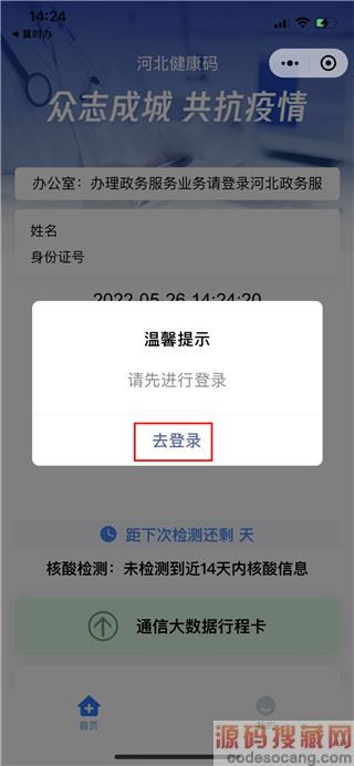 2、等待跳转,弹出提示后点击【去登录】,可选择微信快捷登录。