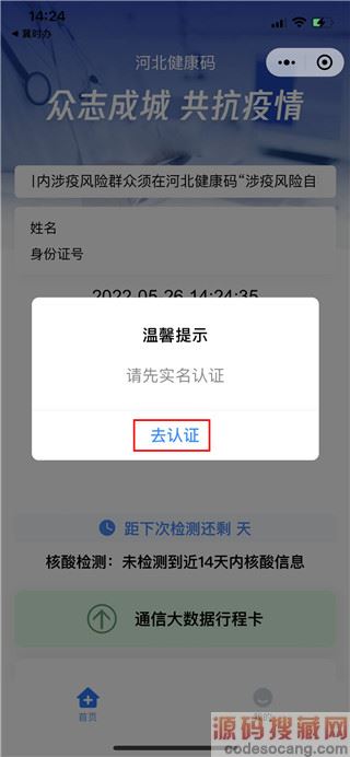 3、登录后,弹出新提示后点击【去认证】。