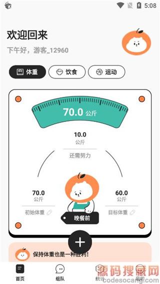 1、在本站下载饭橘减肥app,可以开始记录你的减肥历程