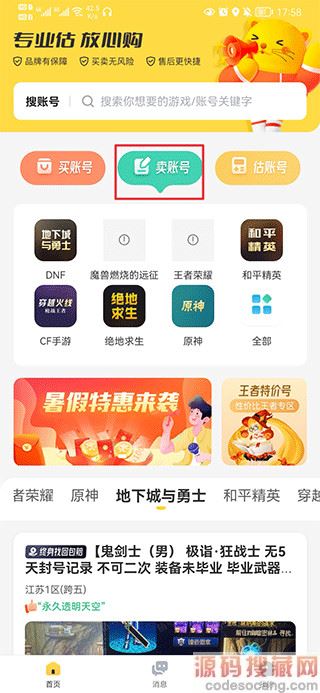 1、下载好app后,点击进入,在首页中点击卖账号。
