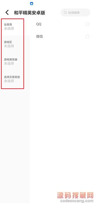 3、选择手机版本后,将运营商、游戏区、游戏服务器、交易类型等信息完善。