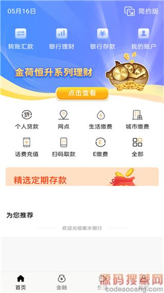 2、进入衡水银行手机银行客户端后,即可进行:个人贷款、网点、生活缴费、城市缴费等一系列操作;