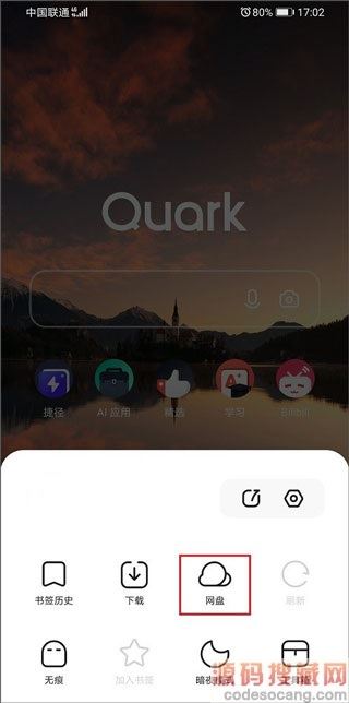 1、打开夸克app后,点击菜单图标,进入夸克网盘;
