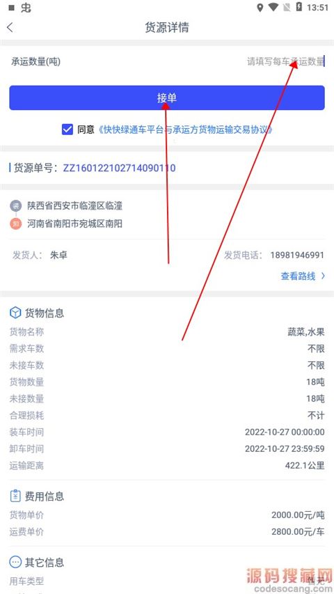 5、接下来用户输入承运数量点击接单即可接单成功。