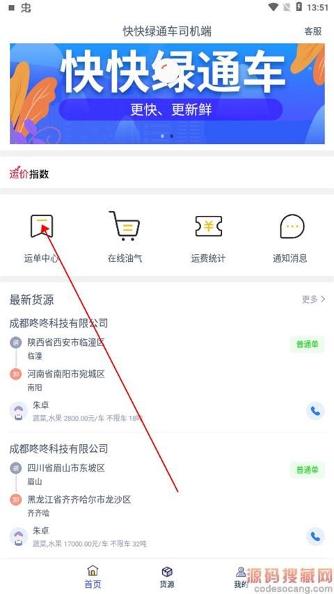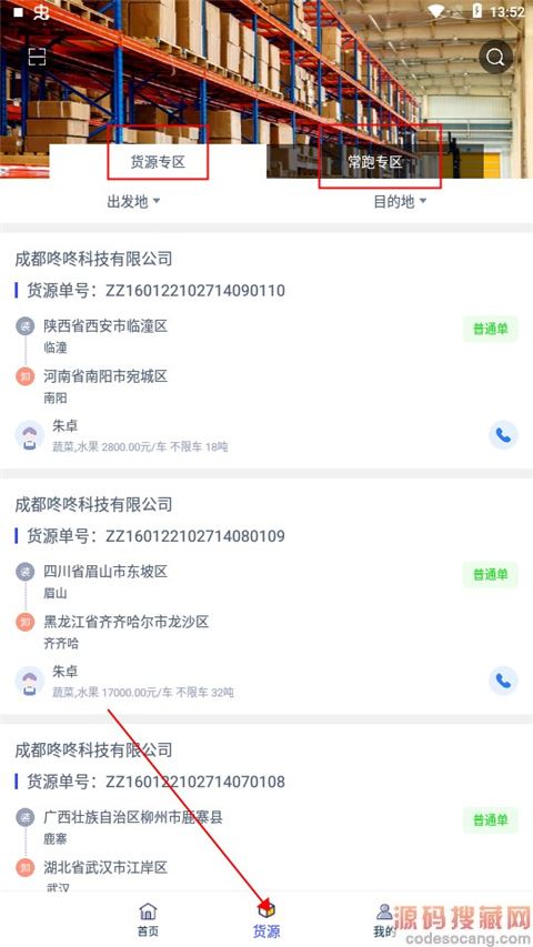 2、进入软件后用户可看到最新货源,找到自己感兴趣的货源点击进入页面。