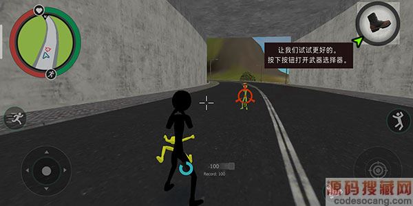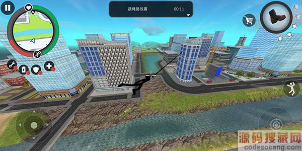 7、准星瞄准建筑,点击钩锁图标即可使用绳索快速移动。