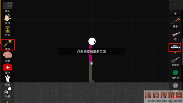 1、打开手机进入火柴人模拟沙盒游戏中,在游戏中选择一辆汽车,并将人物放入驾驶位。