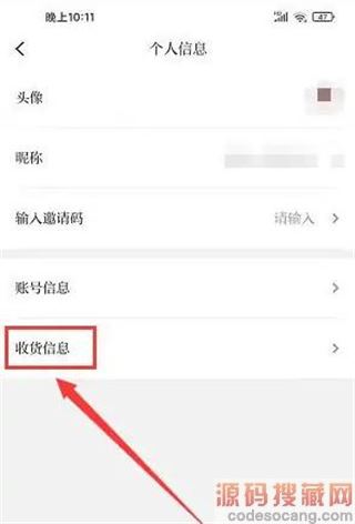 2、进入个人信息界面,点击收货信息;