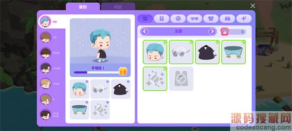 6、还可以为BTS 角色们进行各种装备,当然这些装扮是需要花费金币进行购买的哟!