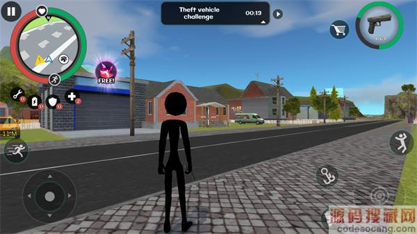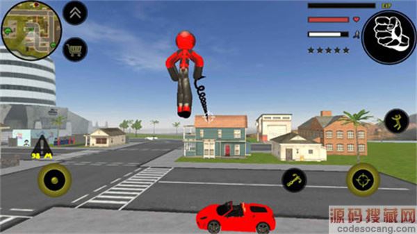 左侧移动、加速,右侧绳索,攻击(跳跃),跳跃,右上侧的武器更换以及血量、经验的显示都实时更新,一览无遗,凭借着大家自由的玩法,与其他帮派的人物进行交火,期间杀人能够获得经验,杀多了会产生星级,警察和其他附近角色会特殊照顾你对你展开火热的进攻,而如何存活,如何将其他人物击杀则是你所需要完成的任务。