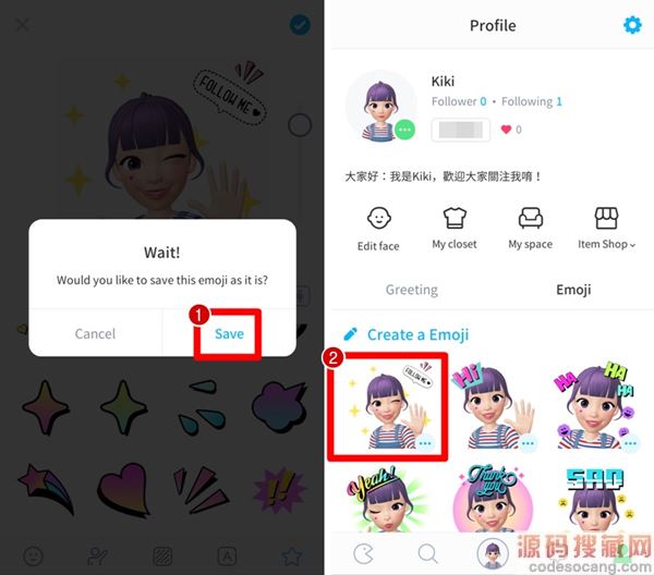 2、【? Save 储存】→【?自己做的表情贴就出现啦】;