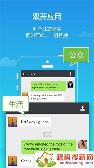同时运行两个帐户,轻触一下即可快速切换,有效管理不同的帐户。
