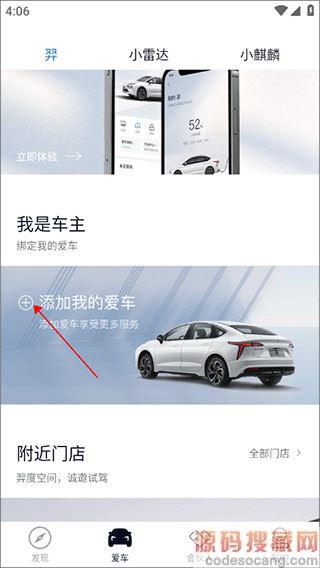 1、打开并登入江铃新能源app,进入爱车页面,选择添加我的爱车点击。