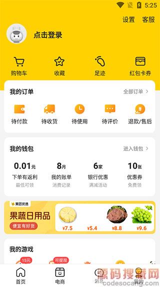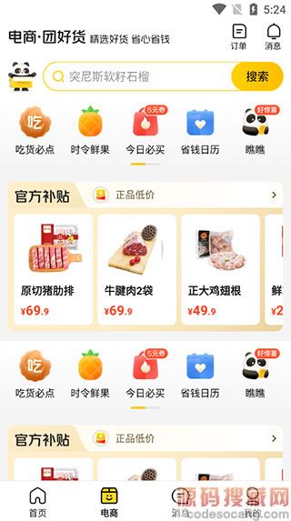 3、电商页面,就是一个购物平台,吃货必点、时令鲜果、今日必买、省钱日历、瞧瞧等热门推荐;