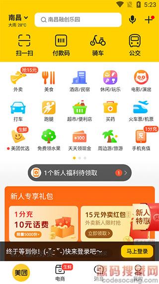 1、首先从本站下载美团官方免费最新版,注册并登录,支持微信、QQ、手机号登录;