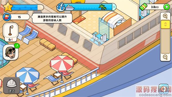 1、玩家在游戏中需要建造各种不同的设施,乘客在航行过程中可以在游轮上消费,玩家即可获得收入。