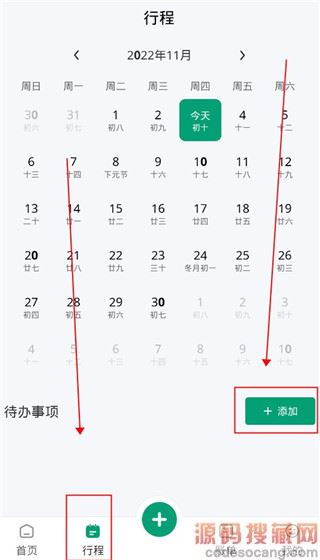 3、我们点击行程,在这里点击添加,可以将我们后续重要的事情记录在其中,到时间后软件会自动提醒你