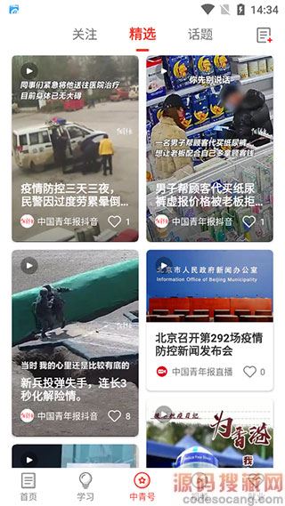 4、点击左上角的中国青年报,即可查看当天报纸;
