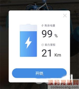 2、成功扫码后,会弹出一个关于车辆信息的新窗口,点击【开锁】成功解锁助力车;