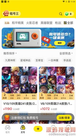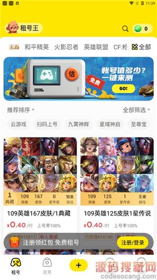 3、然后点击租号,可以看到有很多游戏都进行租;