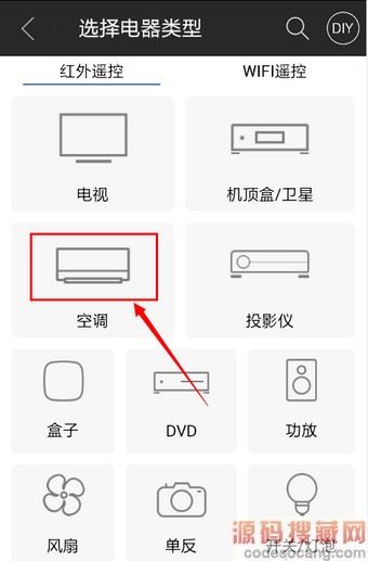 打开添加遥控器,选择家电类型:空调;空调品牌:美的;