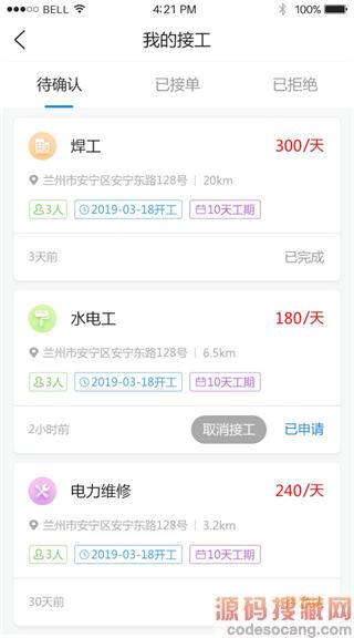 3、挑选工人。在发布招工信息之后,很快就会有附近的装修工人申请上工,所有申请的工人信息都可以在APP个人中心看到,可以后台选择也可以电话联系进行选择,择优录用。这个办法招工非常方便也非常快。