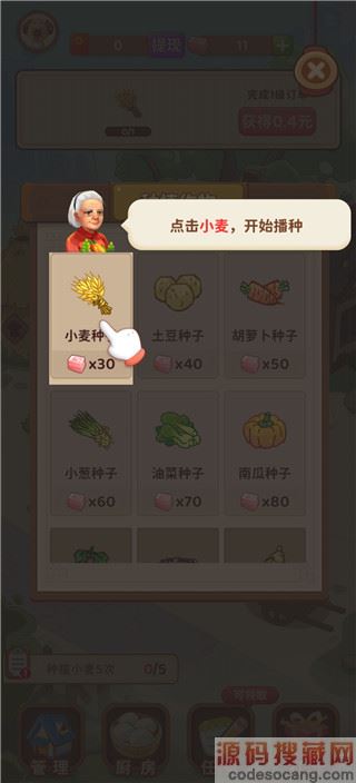 2、点击小麦,开始播种