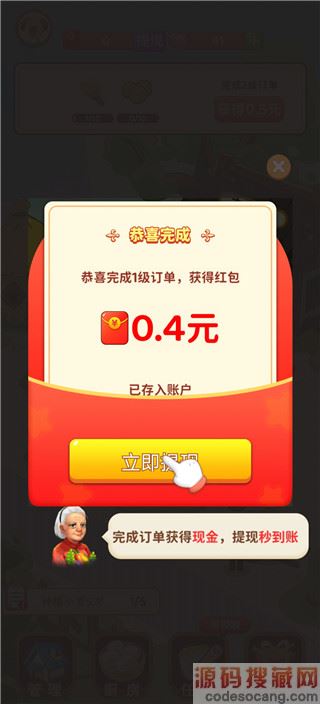 4、完成订单即可获得红包