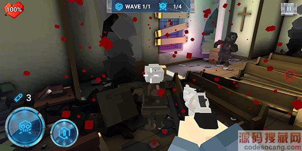 3、左上角是玩家的生命值,正上方显示的是当前波数和消灭僵尸数目。