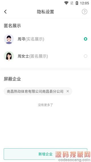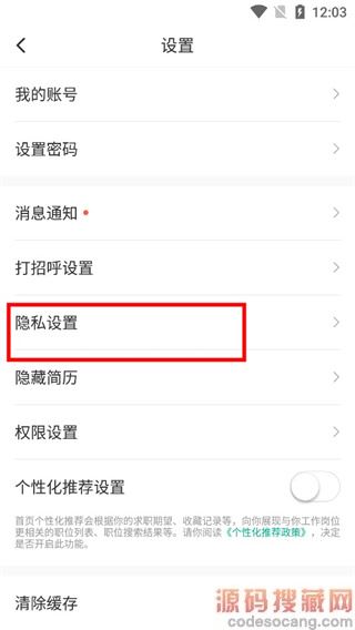 4、进入隐私设置页面,在屏蔽企业中找到要删除的企业,点击该企业后面的“X”按钮。