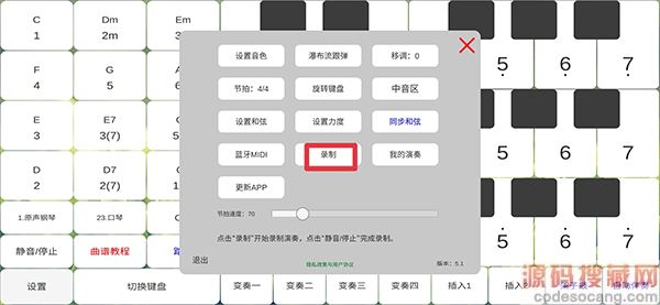 6、另外在设置中用户可以自行调节想要的效果,也可以点击录制进行演奏录制。