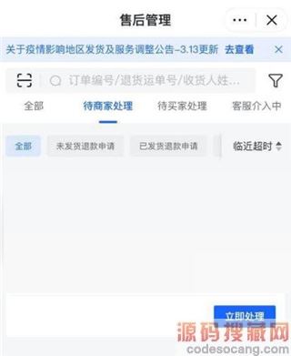 2、在售后管理列表里,选择退款的订单后点击立即处理;