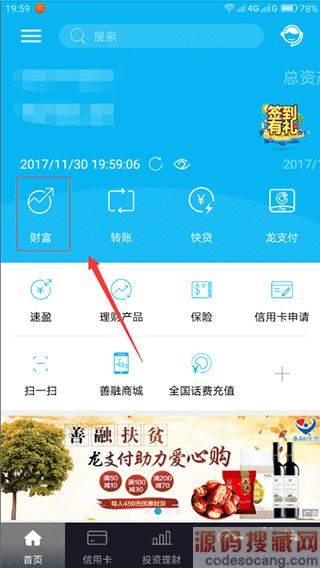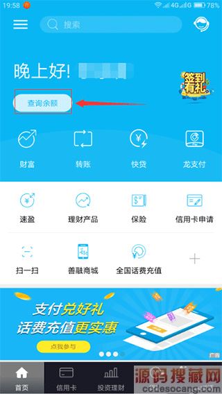 1、打开建设app后,在首页左上角点击“查询余额”。