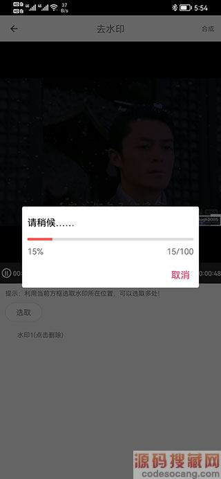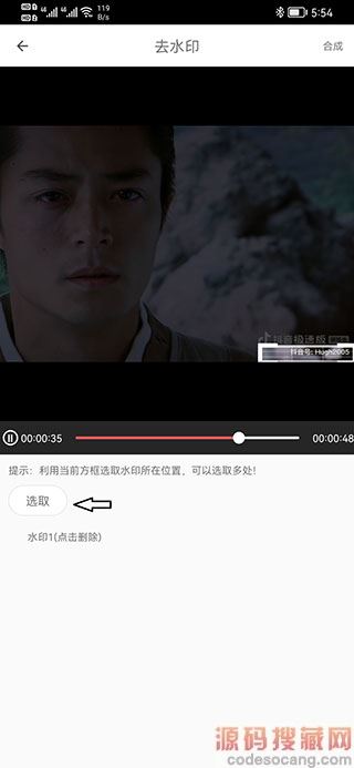 3、去水印非常简单,在视频里有一个框框,把水印款在里面,在点击选取,在下面就出现列表。