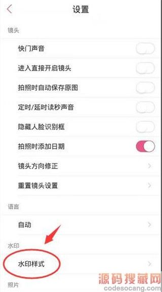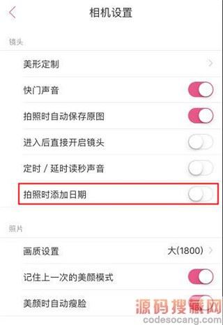 3、在相机设置界面中,将“拍照时添加日期”右侧的开关开启即可。